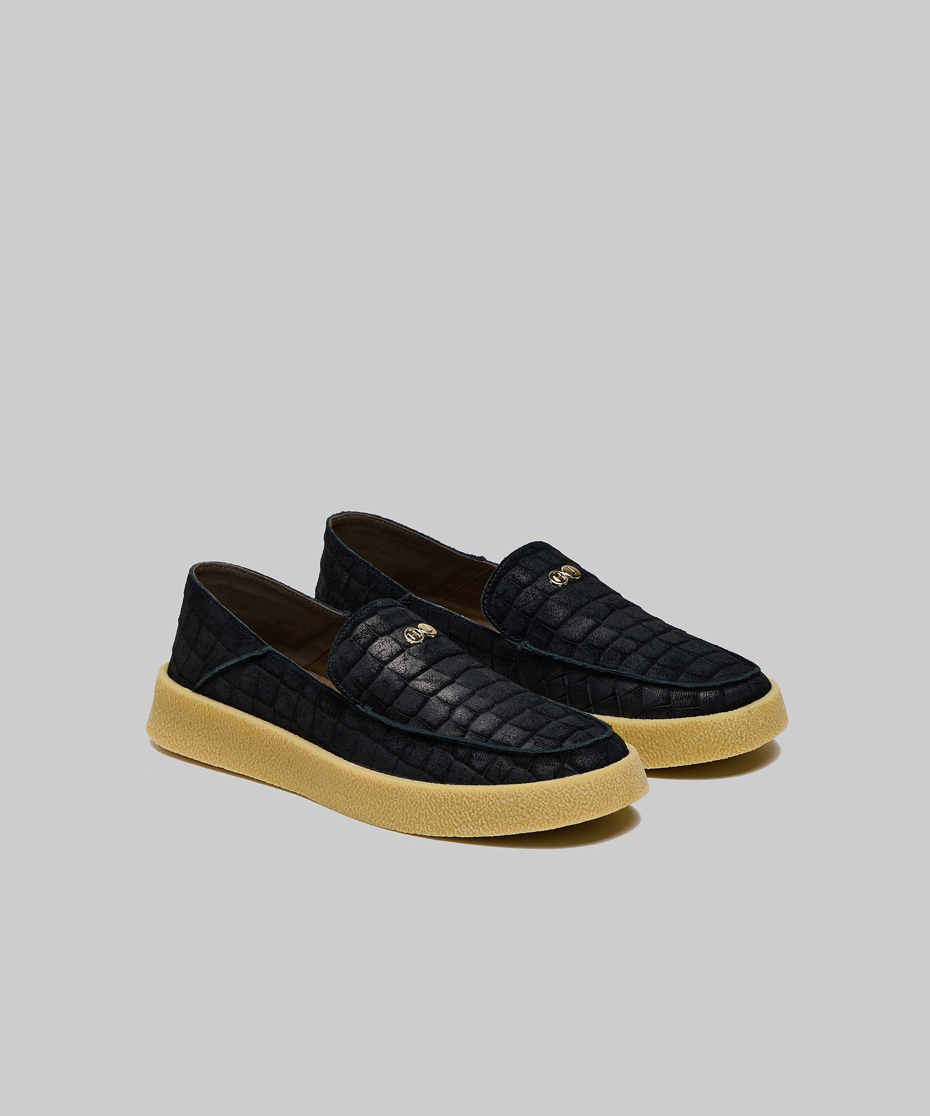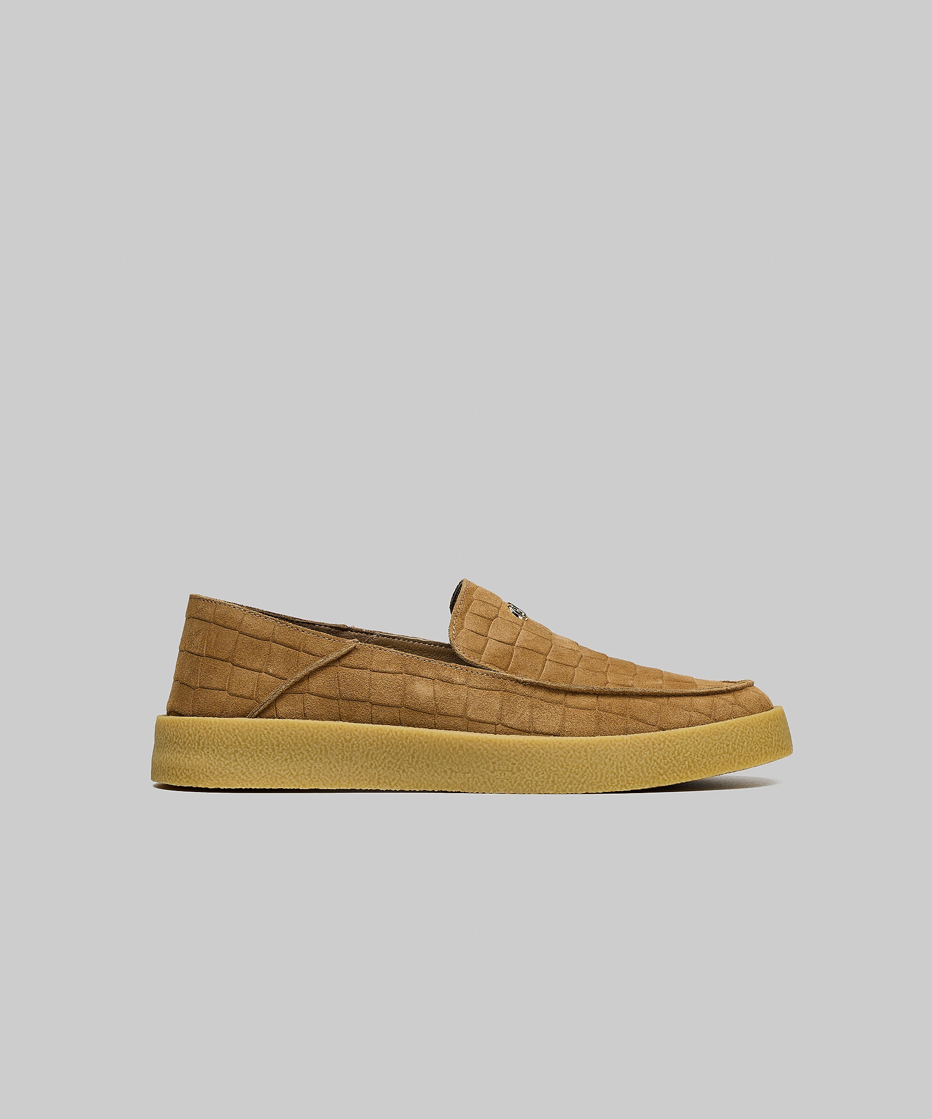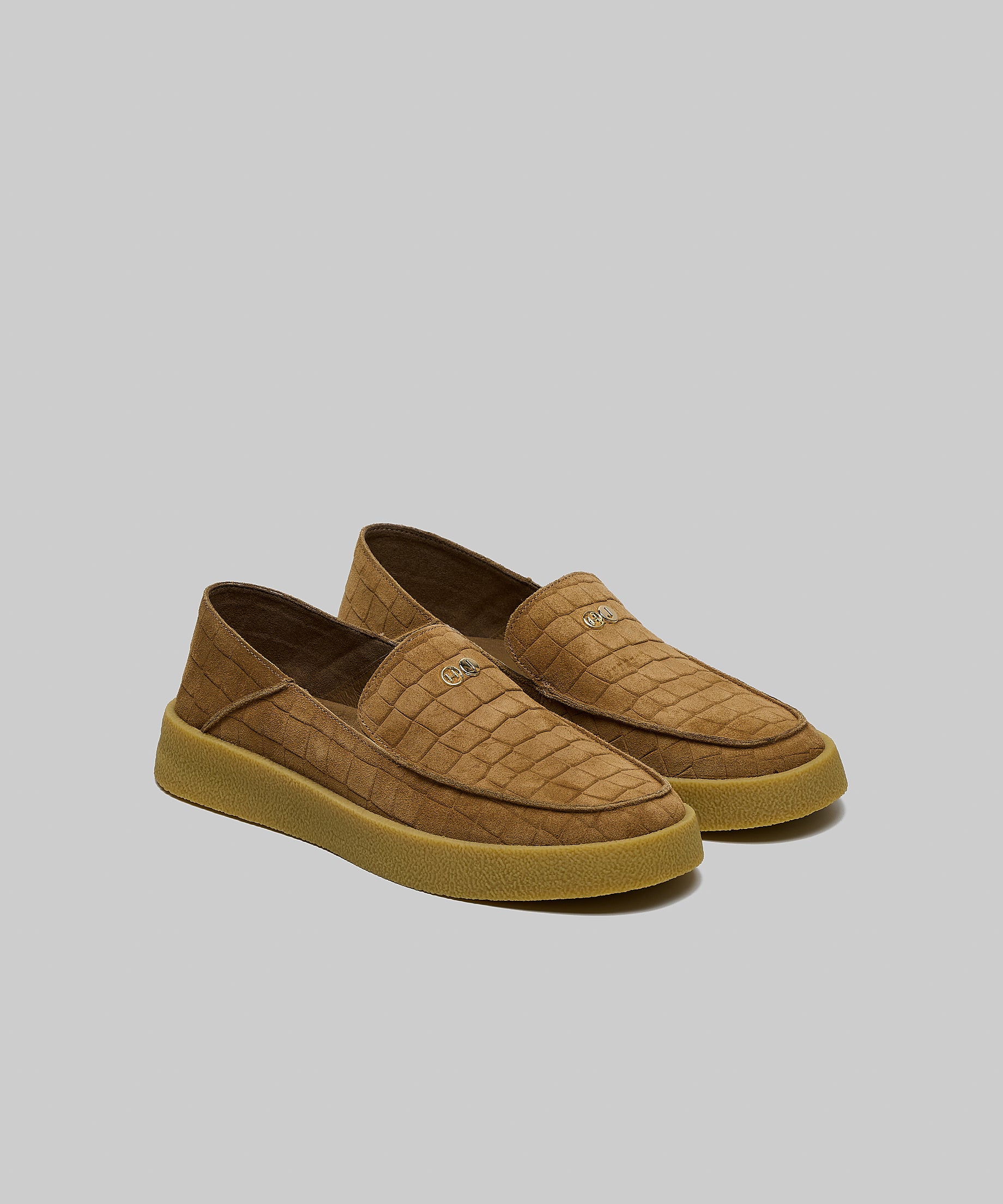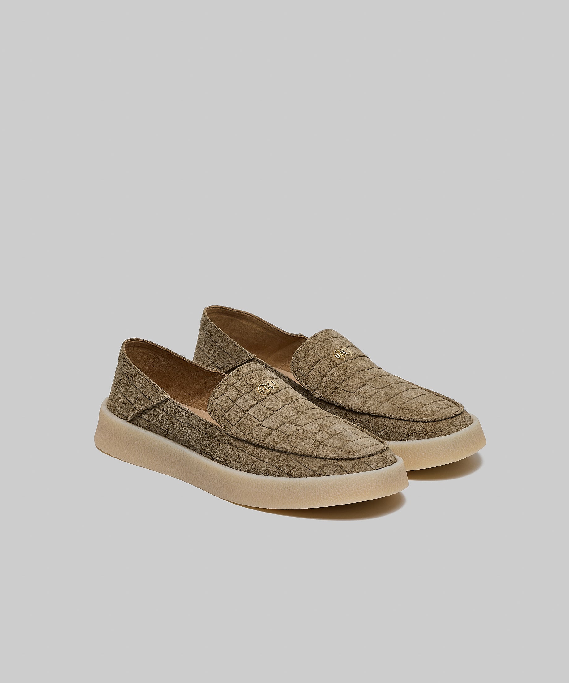 The unlined upper in soft suede with the iconic croc print is paired with a minimal-design sole in natural soft rubber, offering comfort, flexibility, and effortless style.