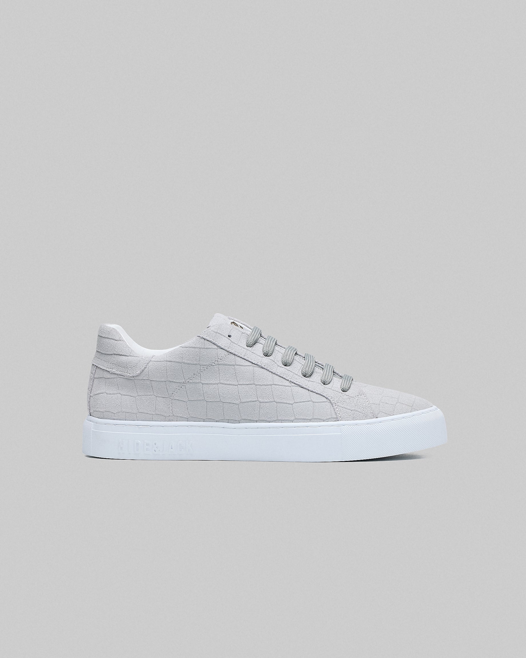Experience luxury with Hide&Jack's Italian designer sneaker in a low rise silhouette. This Essence model features a grey colorway.