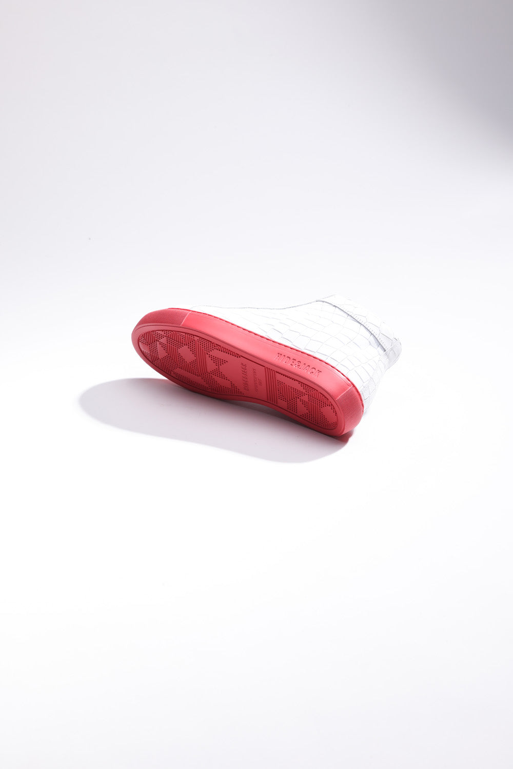These designer sneakers are expertly crafted using 100% action leather. These sporty and elegant sneakers feature a golden logo, tone-on-tone laces, and an iconic red bottom, making them a standout addition to any shoe collection. With their classic white and red colorway, these sneakers are the perfect combination of style and versatility.