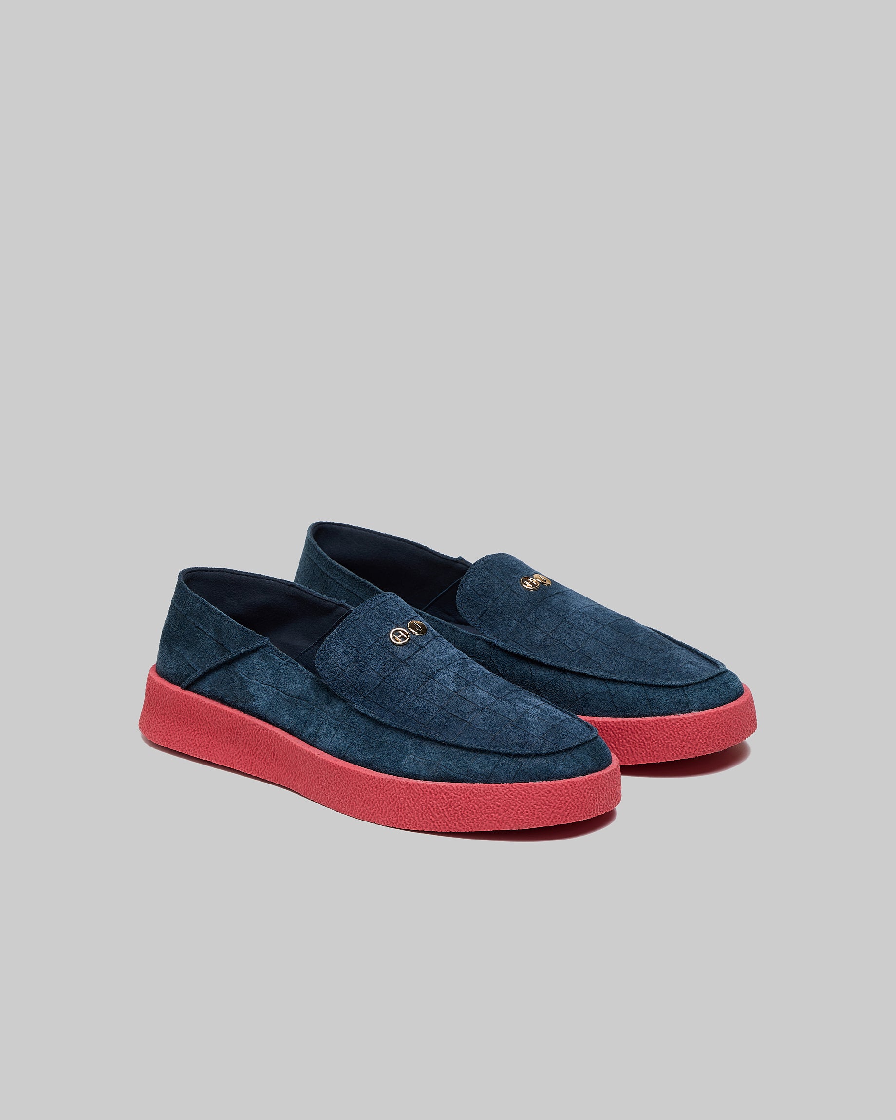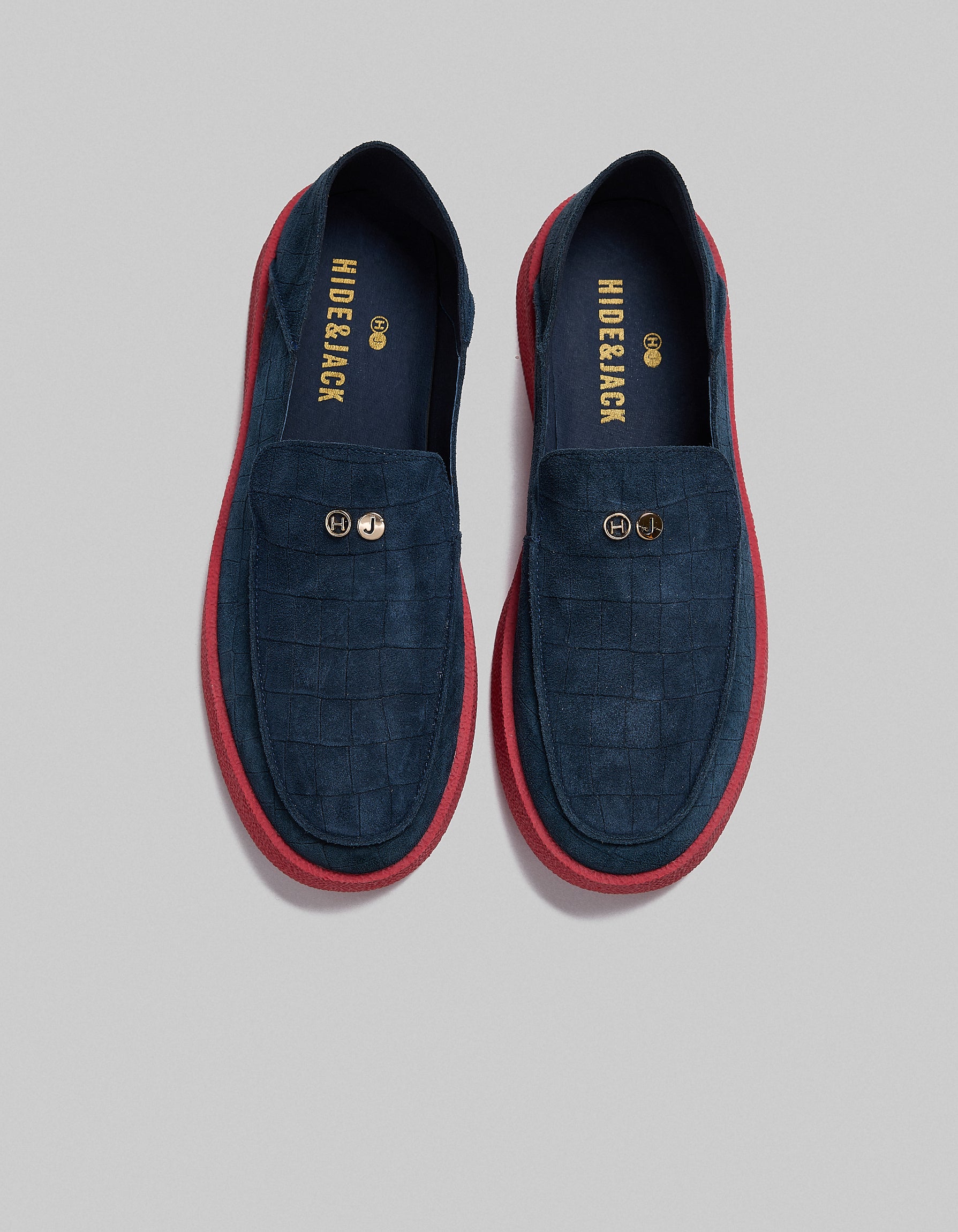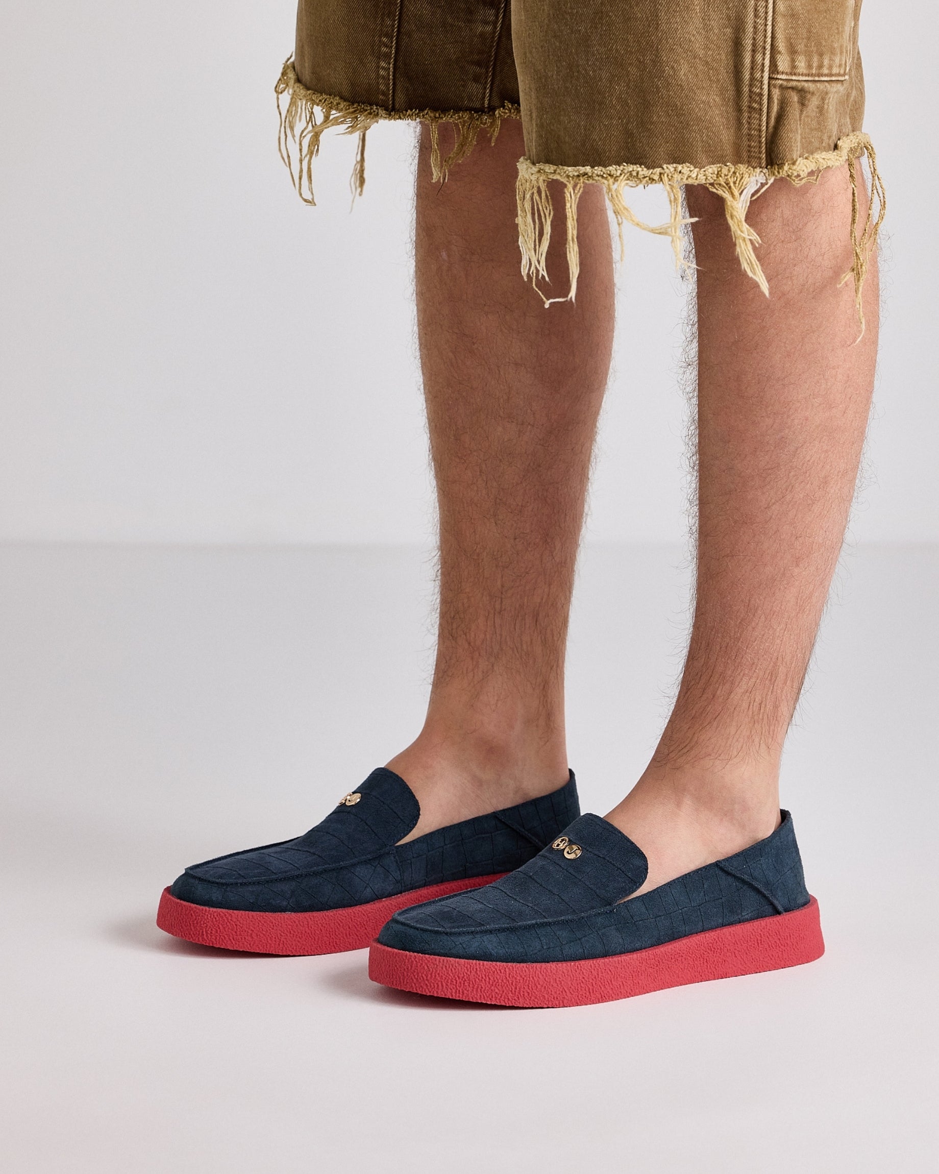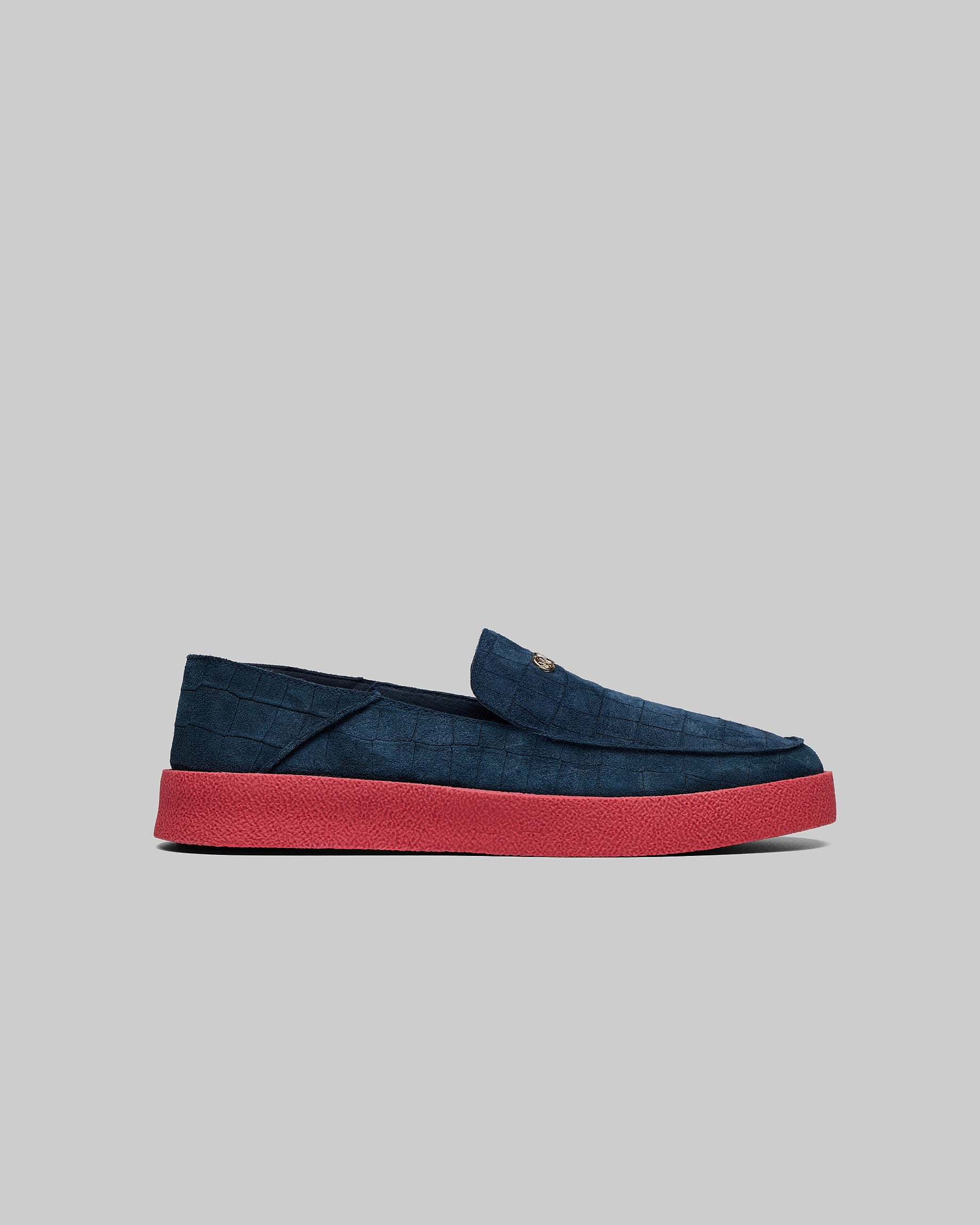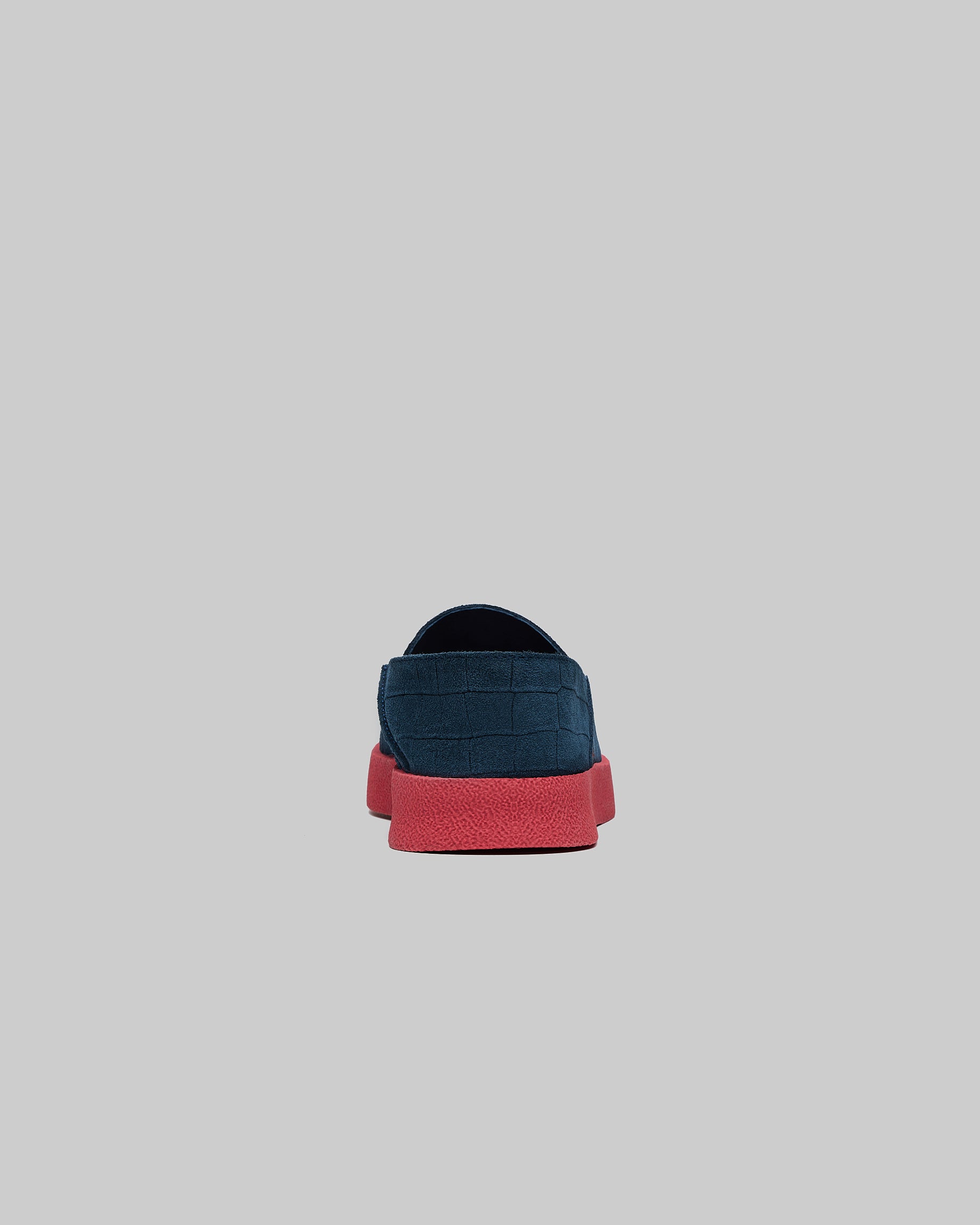 A summer slip-on in unlined croc suede, soft and lightweight.