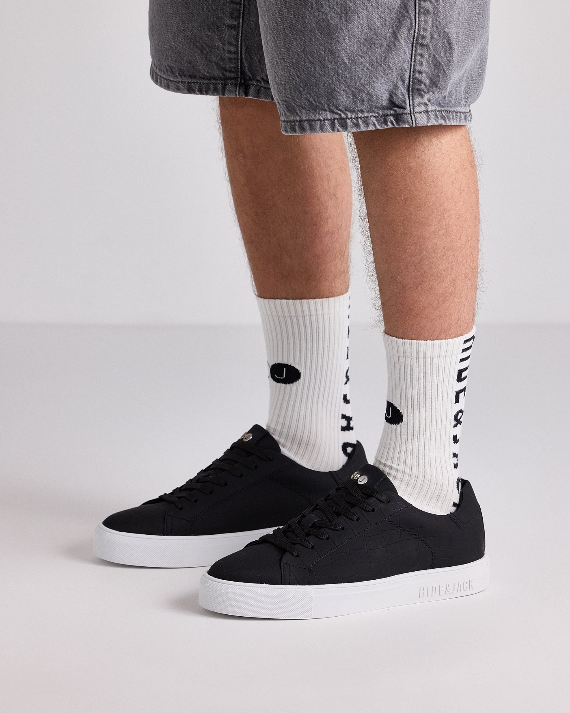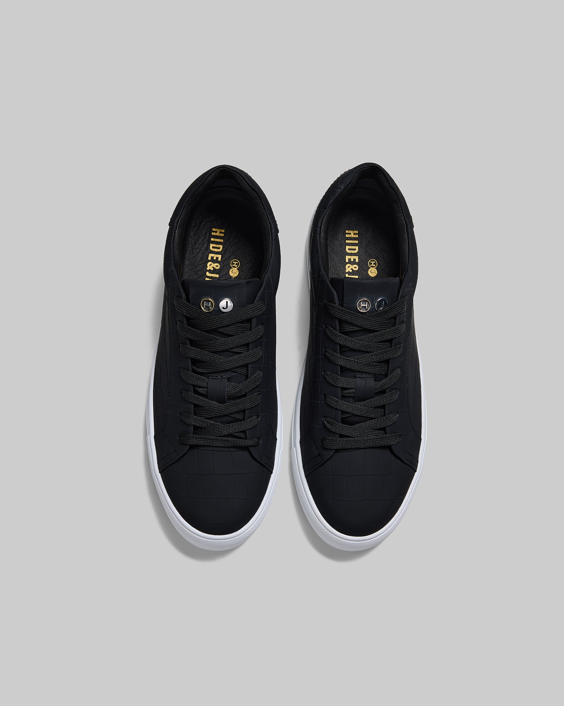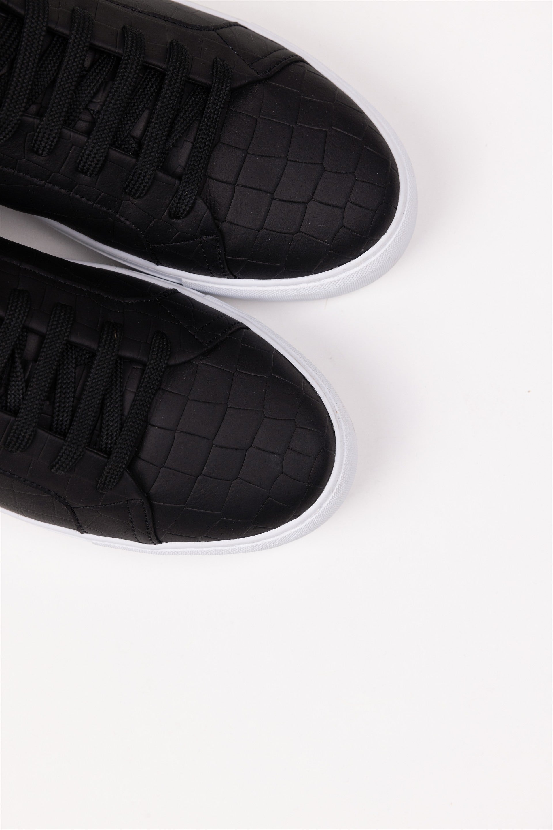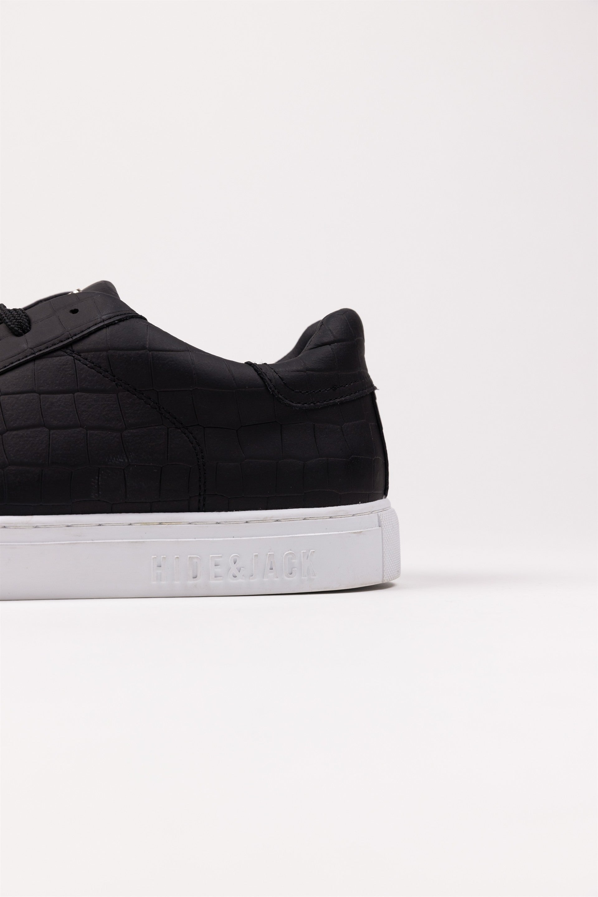 This low-rise sneaker features a sleek and elegant design with a distinctive croco pattern. The contrasting black and white colorway adds a touch of sophistication to any outfit, making it a versatile choice for both casual and formal occasions. With a double personality, this sneaker is the perfect addition to elevate your footwear collection.