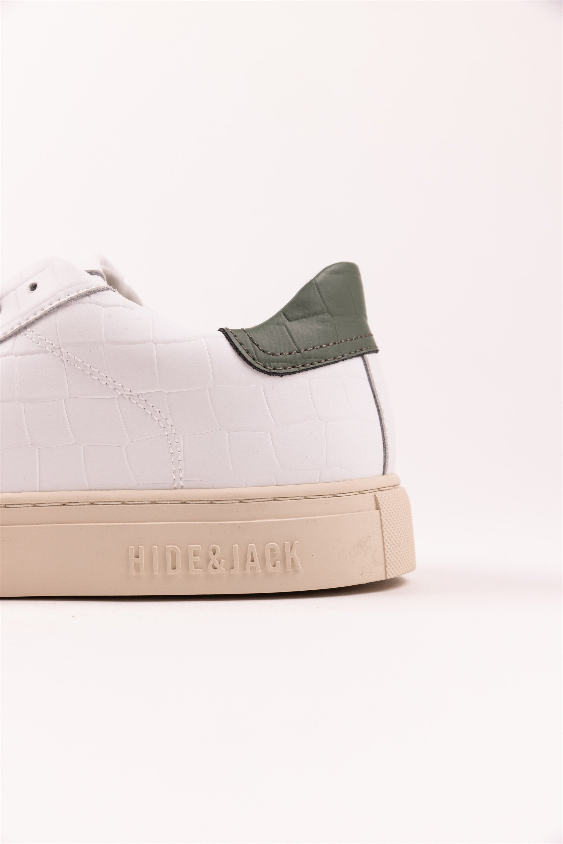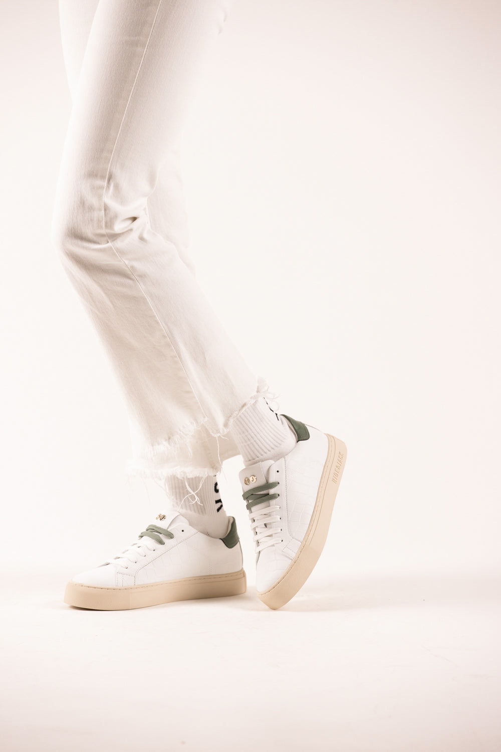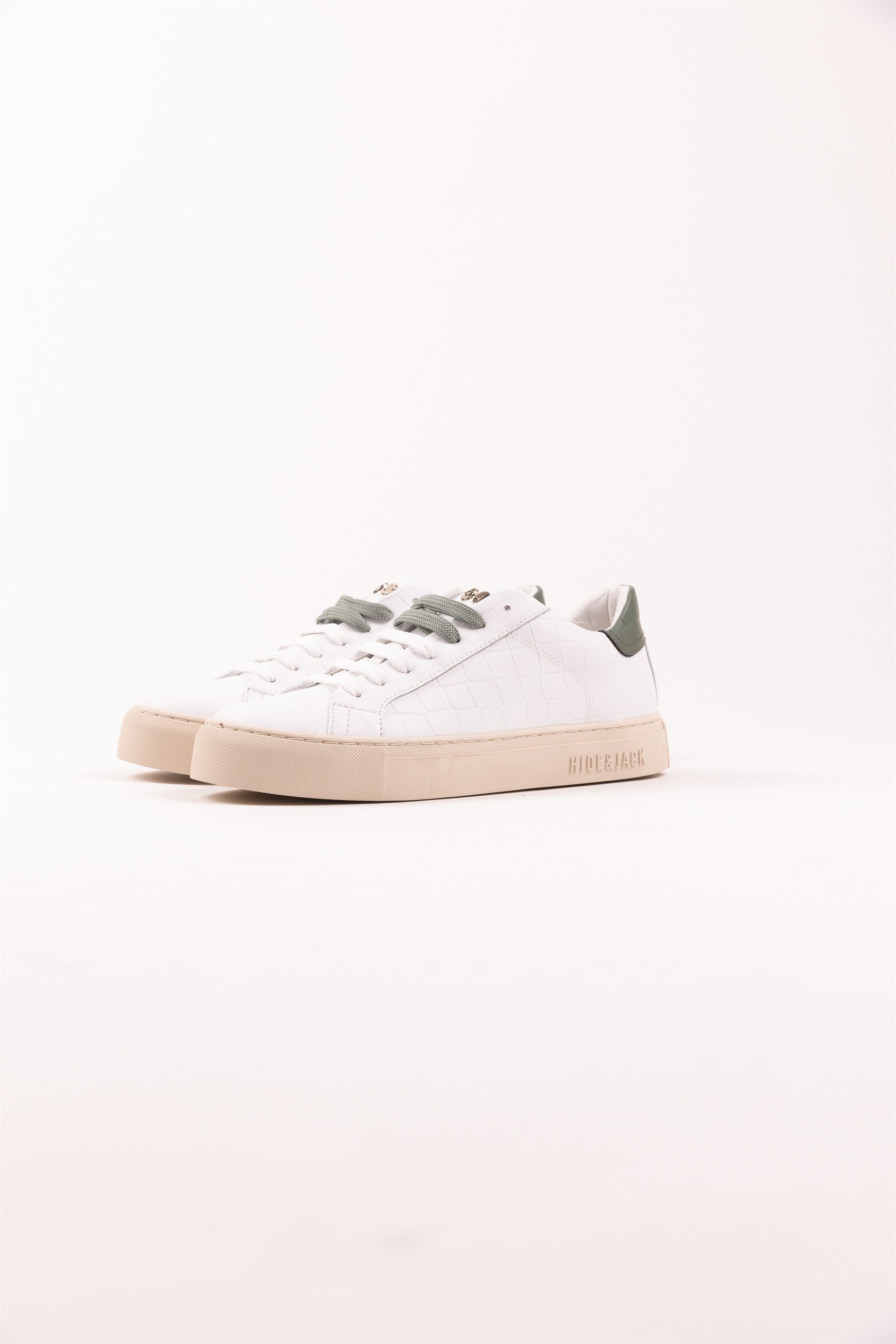 This Italian designer sneaker features a sleek calf leather material with a unique croco pattern, all in a classic and sophisticated all-black colorway. Designed in Italy with the utmost attention to detail, these low rise sneakers exude a sense of elegance and luxury. The tone on tone laces add a subtle touch of refinement to the overall design, while the double personality of this shoe allows it to be both sporty and versatile for any occasion.