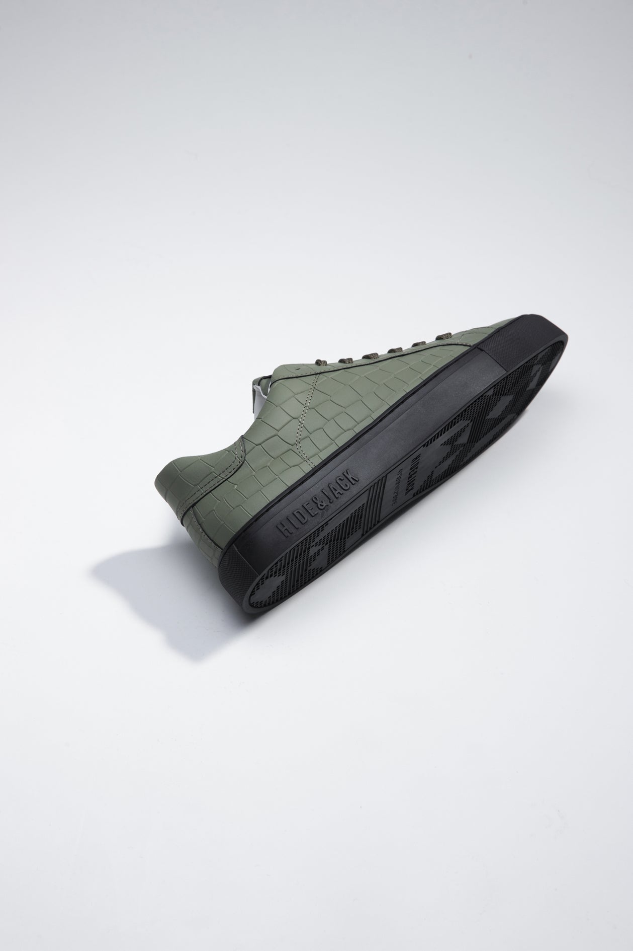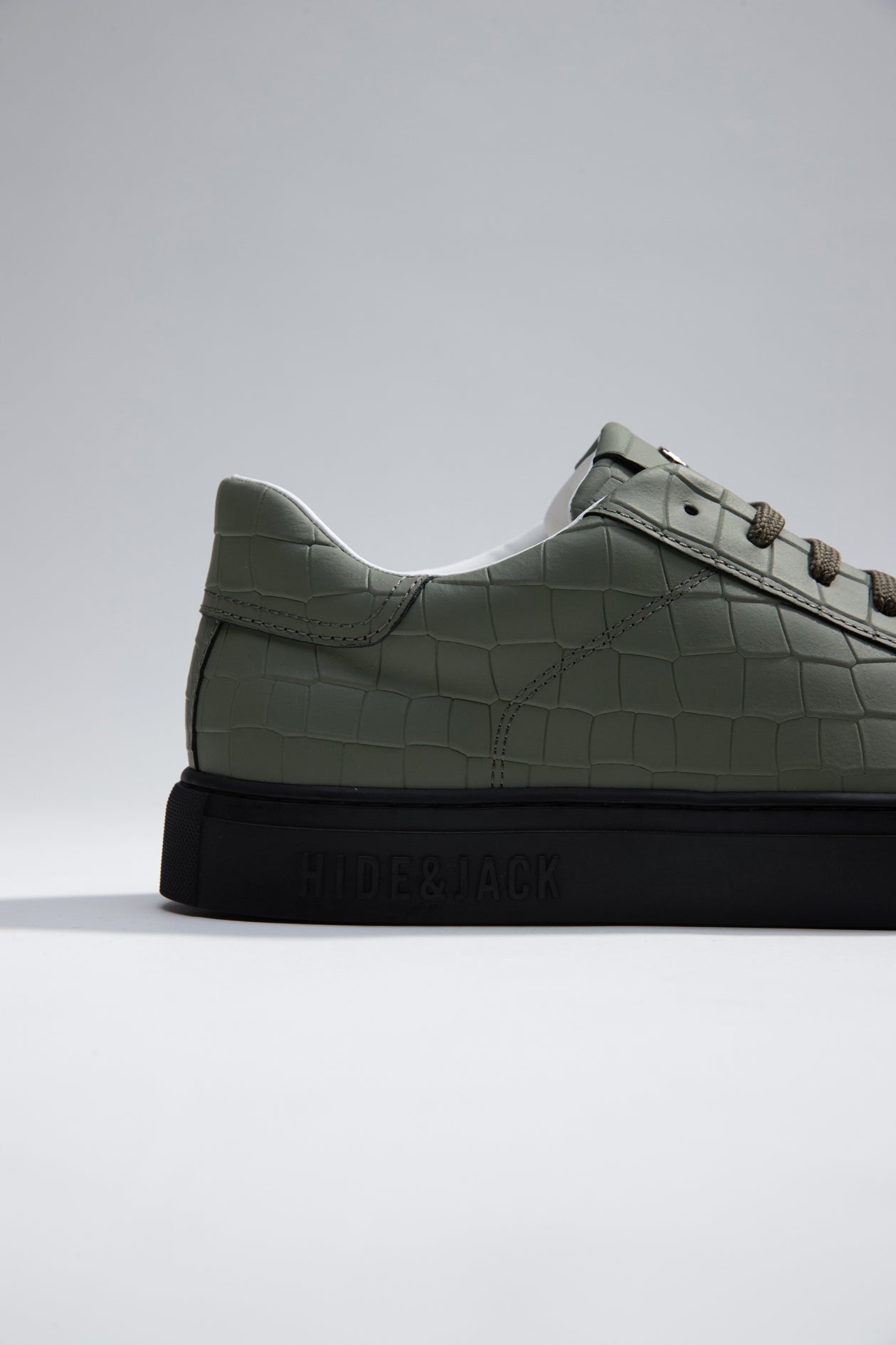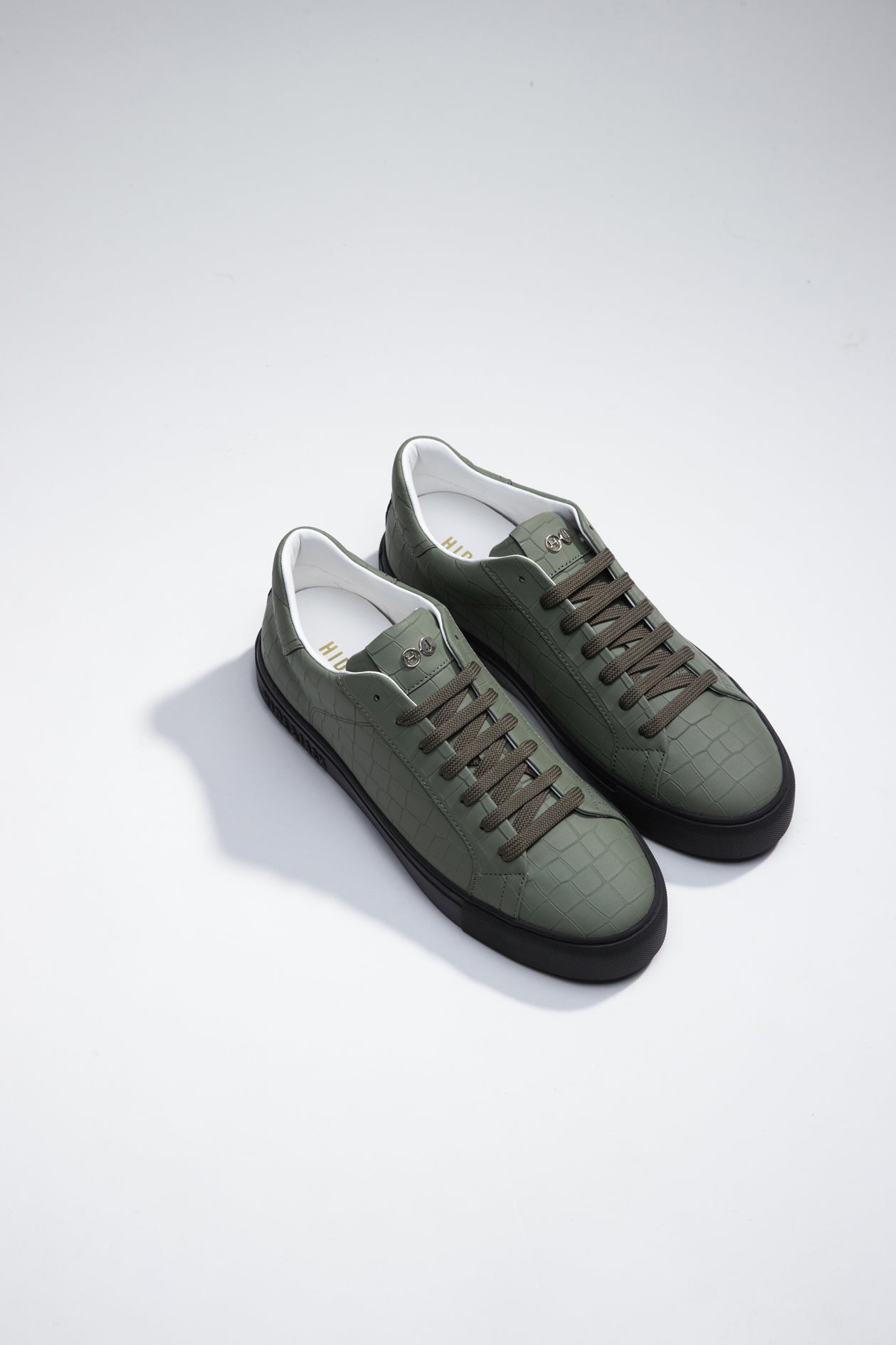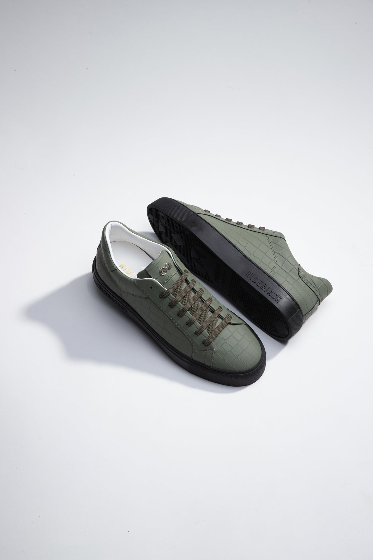 Step up your sneaker game with Essence, a must have sneaker, crafted from the finest materials. Made from high-quality calf leather, these low-rise sneakers offer unbeatable quality and comfort. The striking green upper and sophisticated black bottom create a unique and eye-catching contrast, making these sneakers the ultimate statement piece. Perfect for any occasion, these sneakers will keep you looking and feeling your best.