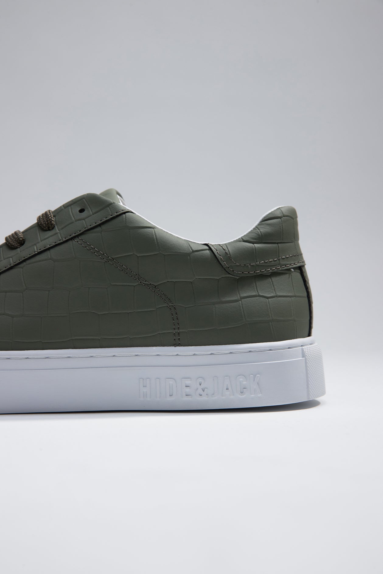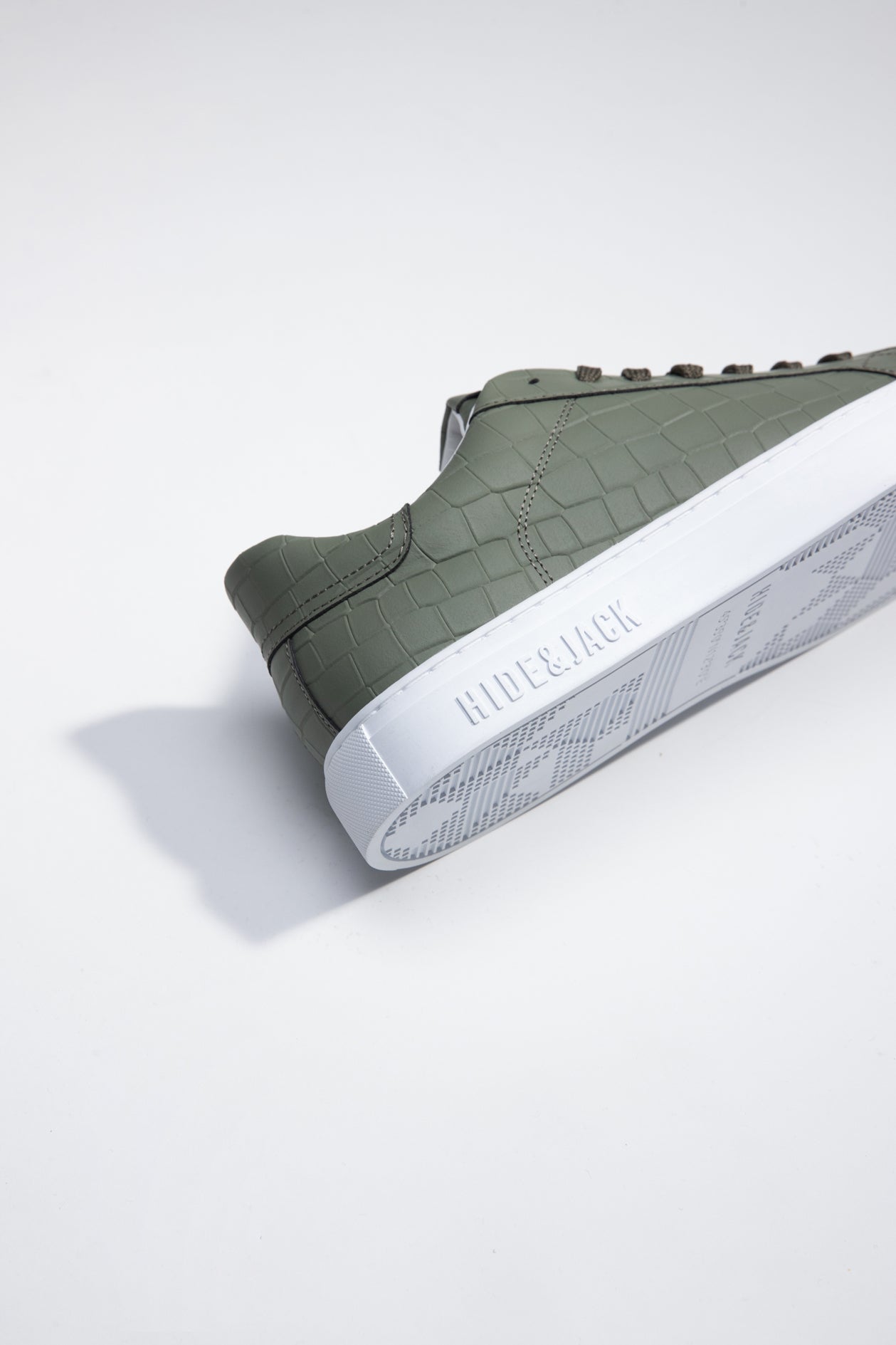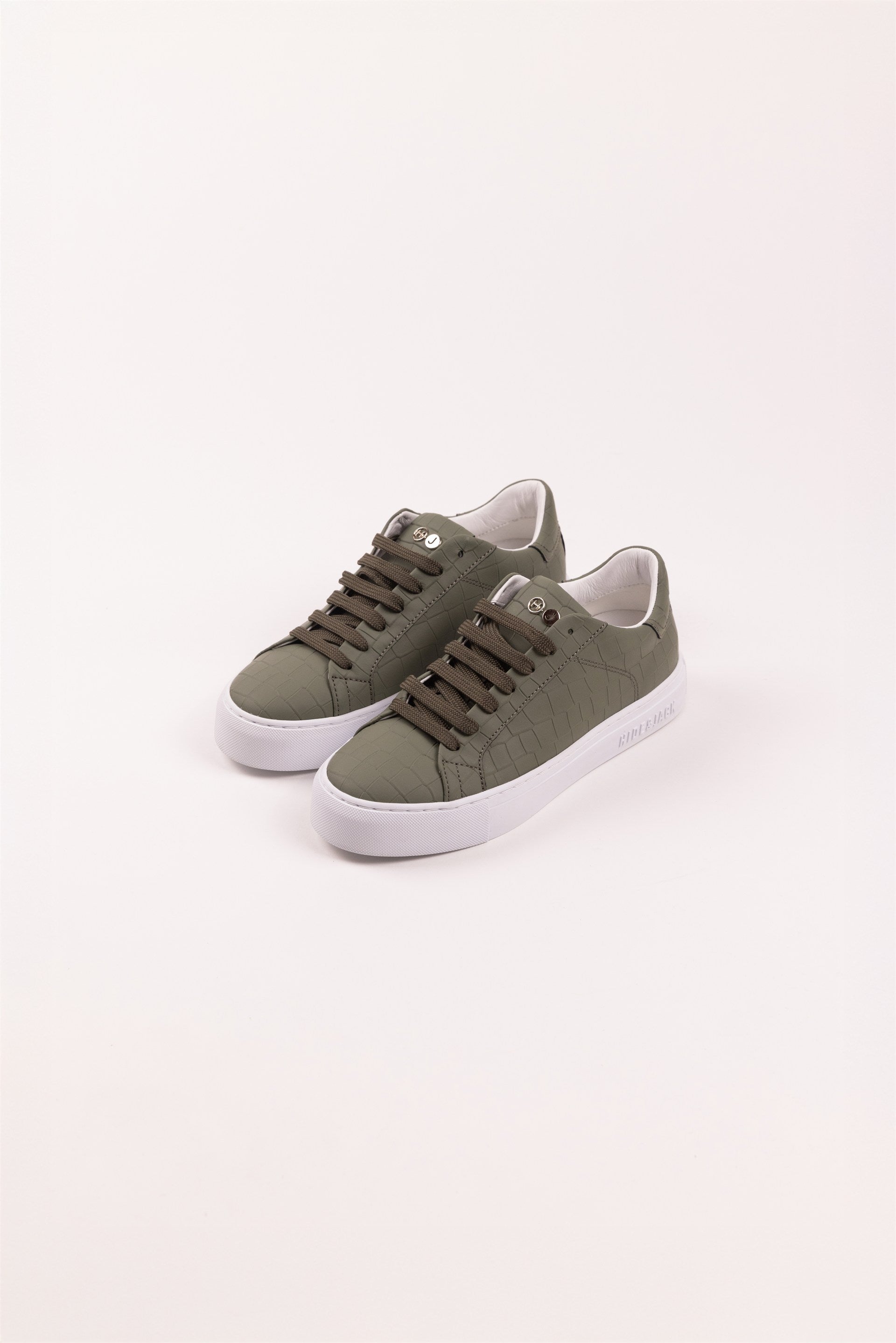 Step up your sneaker game with Essence, a must have sneaker, crafted from the finest materials. Made from high-quality calf leather, these low-rise sneakers offer unbeatable quality and comfort. The striking green upper and elegant white bottom create a unique and eye-catching contrast, making these sneakers the ultimate statement piece. Perfect for any occasion, these sneakers will keep you looking and feeling your best.