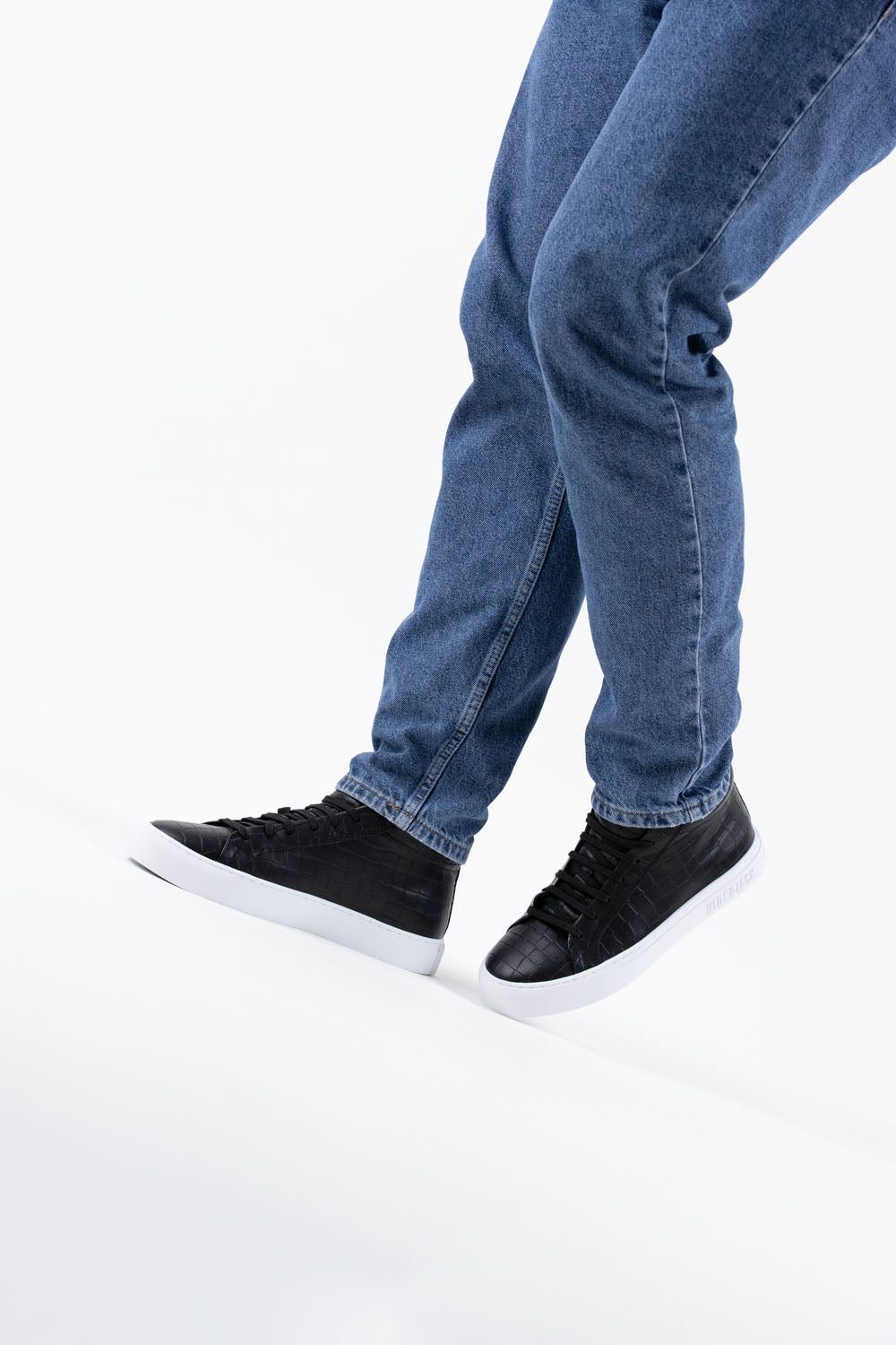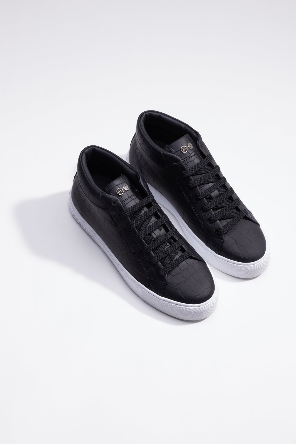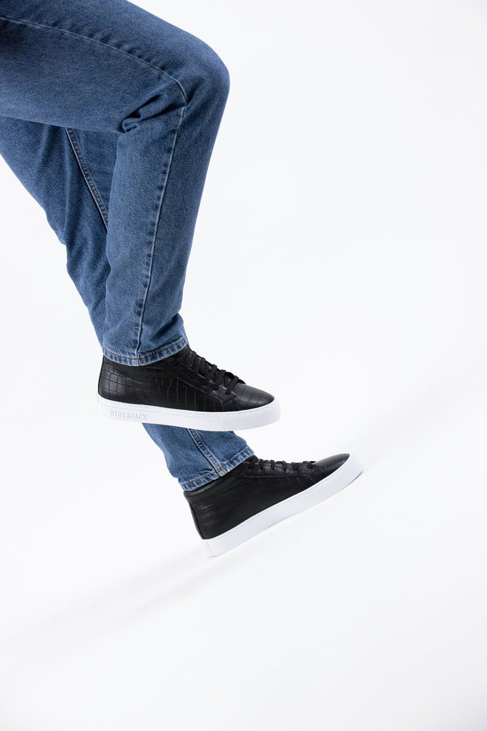 Step up your sneaker game with Essence, an Italian designer sneaker, crafted from the finest materials. The black and white design is both classic and unique, making these sneakers a must-have for any fashion-forward wardrobe. The high-rise design provides ample support and style, making them the perfect choice for any occasion. Whether you're dressing up or keeping it casual, the Essence designer sneaker is the perfect blend of form and function.