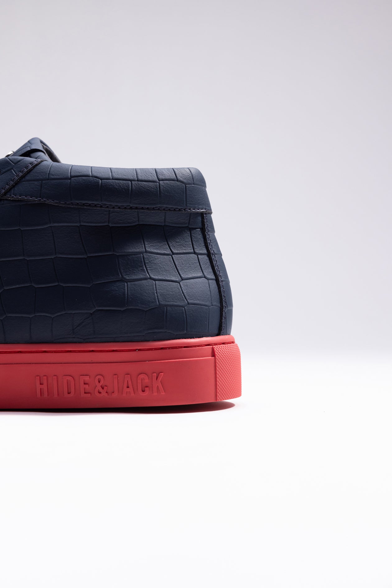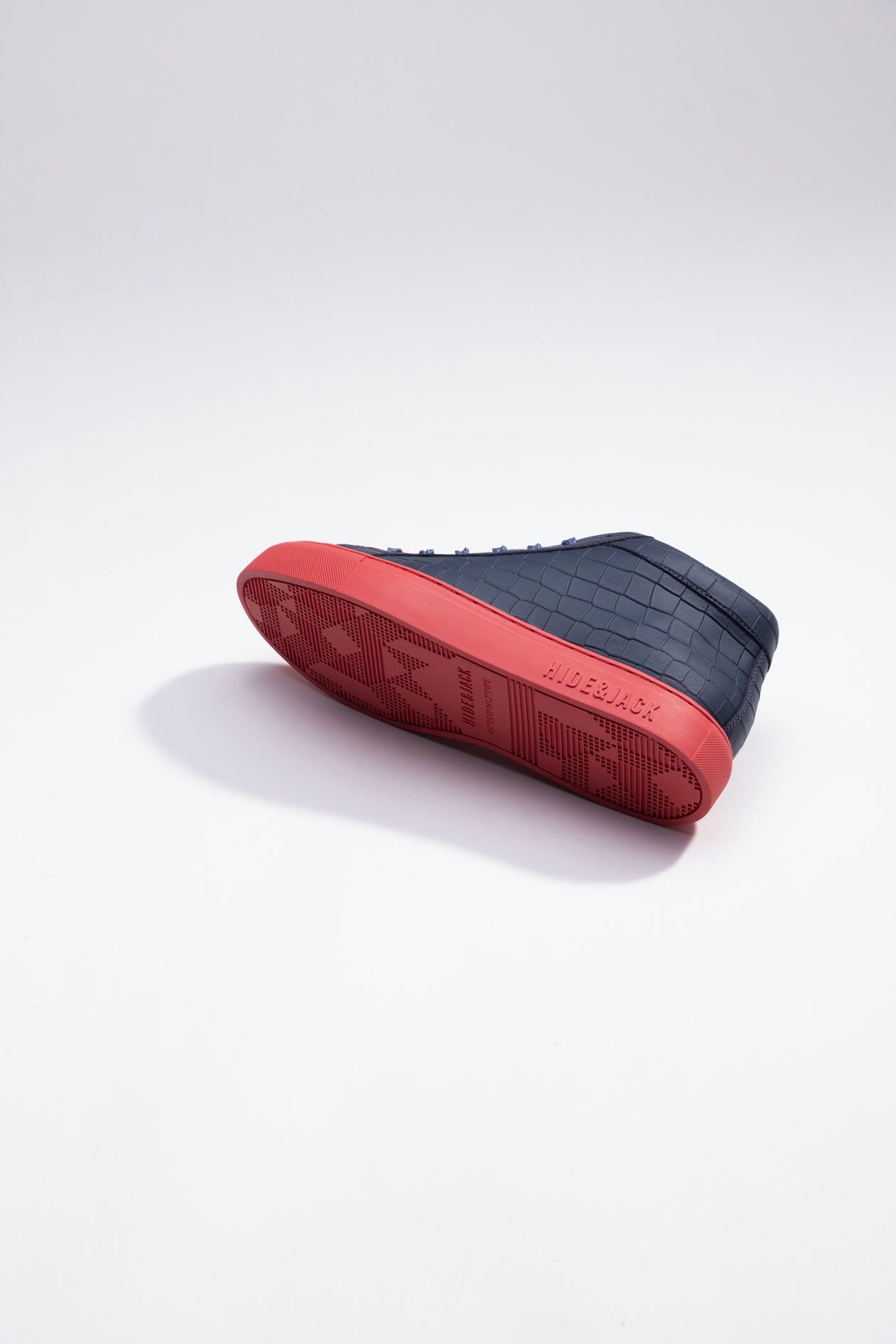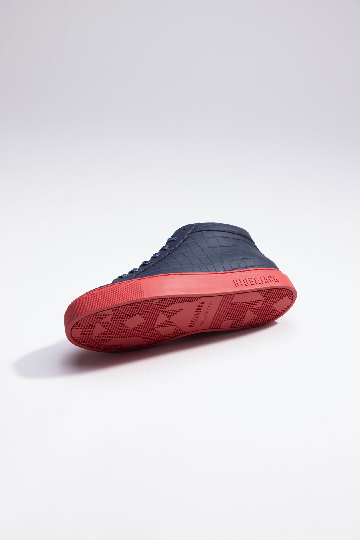 These are our Essence High Top sneakers in blue and red. Designed in Italy with 100% calf leather and featuring our iconic red sole, these sneakers are the perfect balance of luxury and style. The croco pattern adds an extra touch of sophistication to the already elegant design, while the high rise provides both comfort and support.