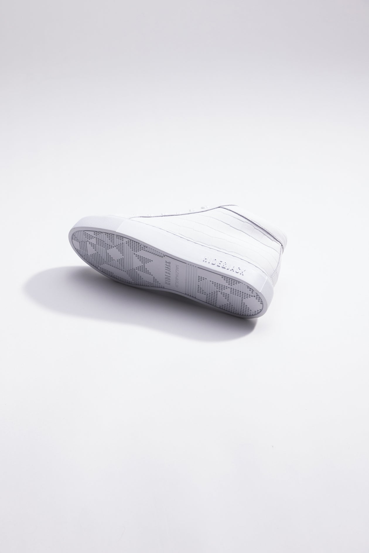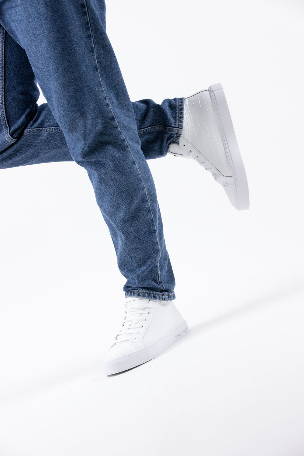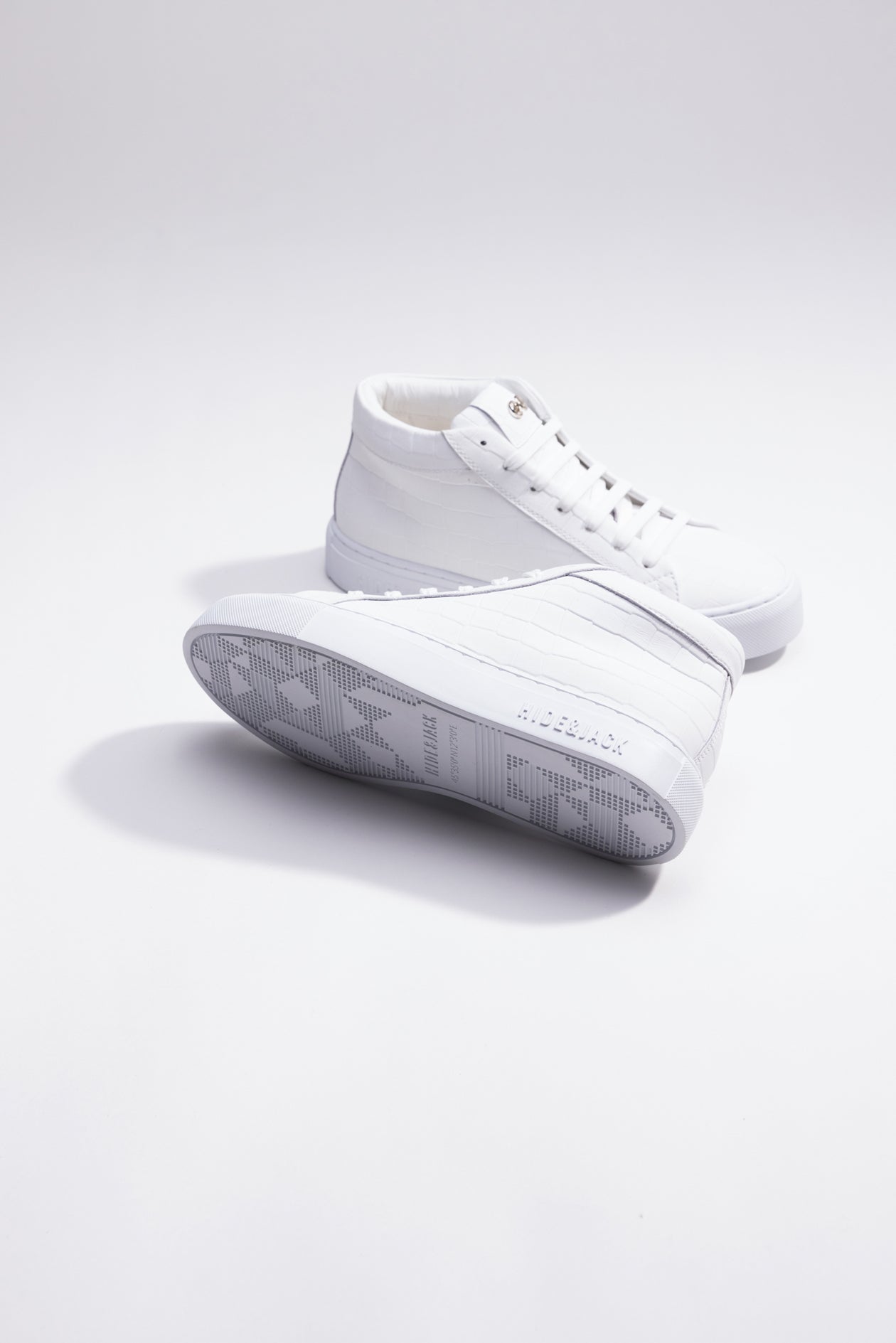 This is the Essence Tuscany high-top white sneaker version. Crafted from 100% nubuck leather and designed in Italy, this sneaker boasts a high-rise design that exudes elegance. Its all-white color scheme, from the upper to the sole, is complemented by the subtle tone-on-tone laces, creating a refined aesthetic.