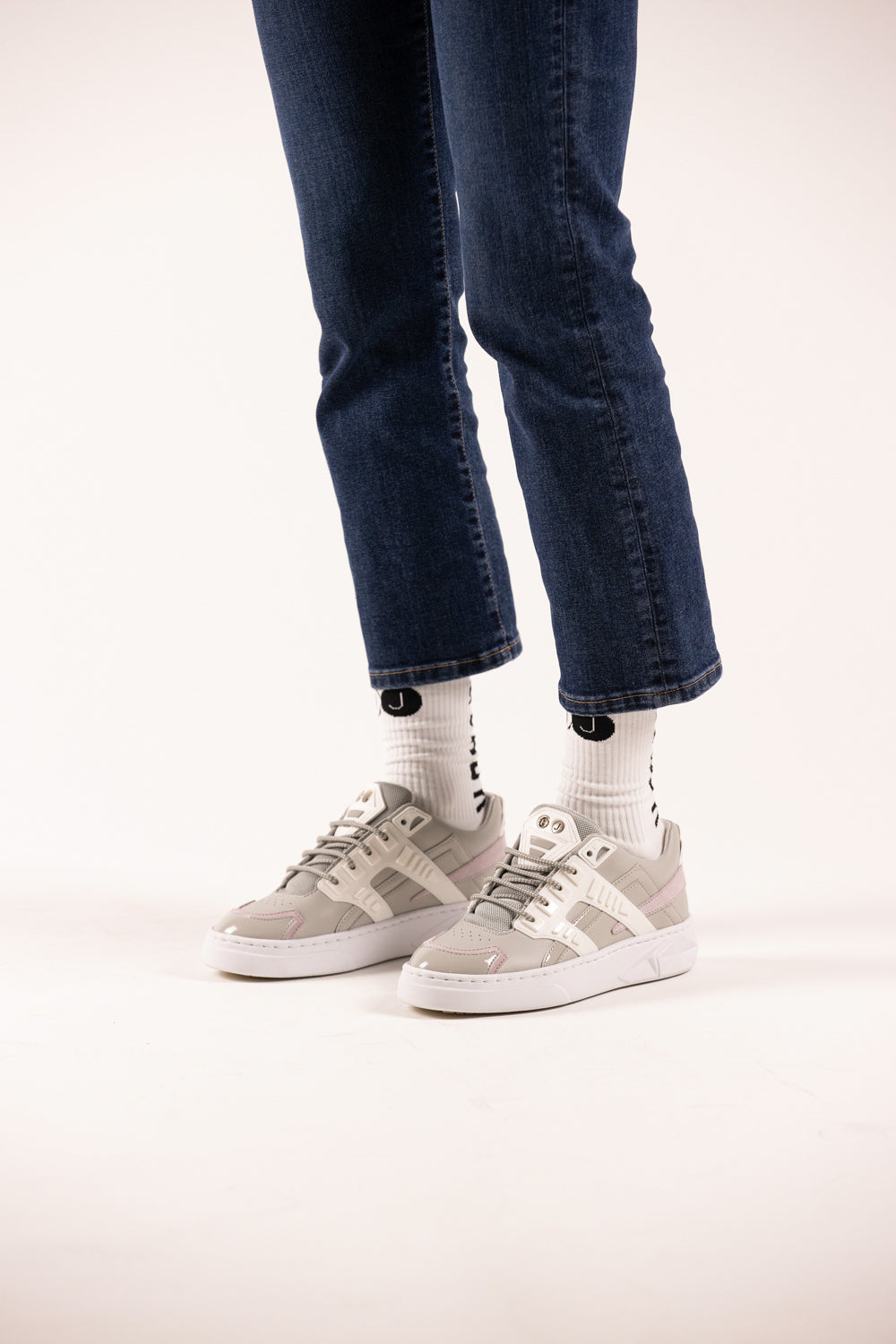MINI SILVERSTONE is the evolution of SILVERSTONE, maintaining the same upper style we added a chunky flat sole to give it a more easy-to-wear appeal. The mix materials of the upper makes this sneaker an authentic masterpiece of color combination. The sole is in phylon and rubber for a maximum comfort and durability.