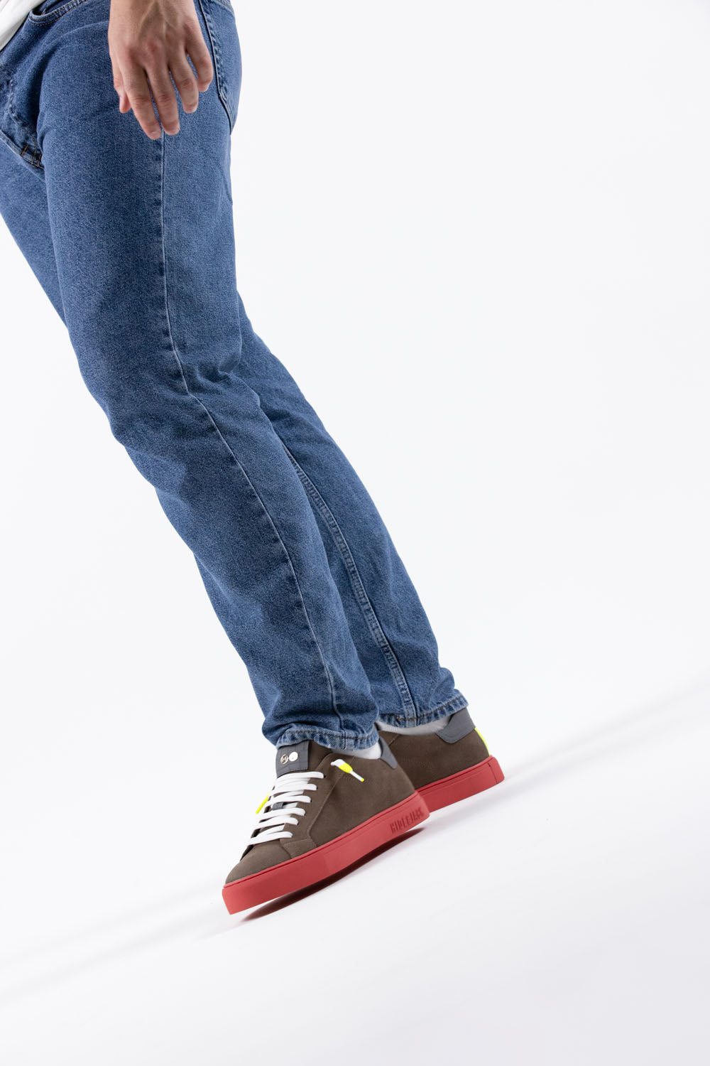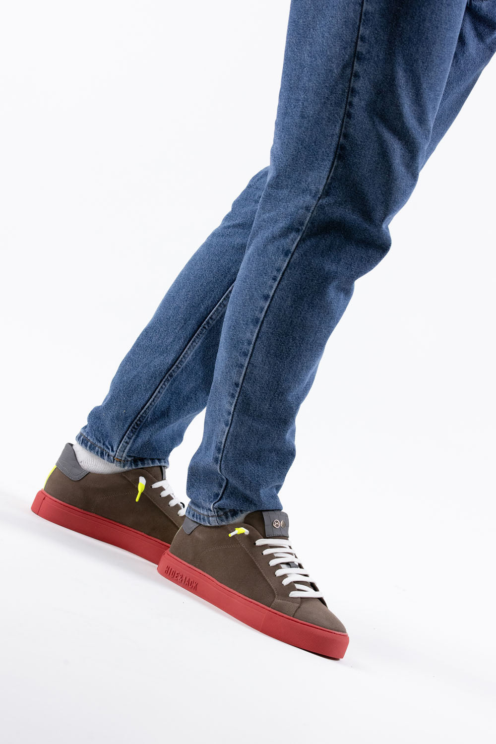 Inspired by the late 70's, these designer shoes are the perfect combination of style and quality. The beige upper is paired with our iconic colored bottom in red. The upper is made of 100% suede leather mixed with sponge, while the lining is crafted from 100% calf leather, ensuring unbeatable comfort and durability. The tone-on-tone laces and rubberized yellow details add a touch of sophistication to these striking sneakers.