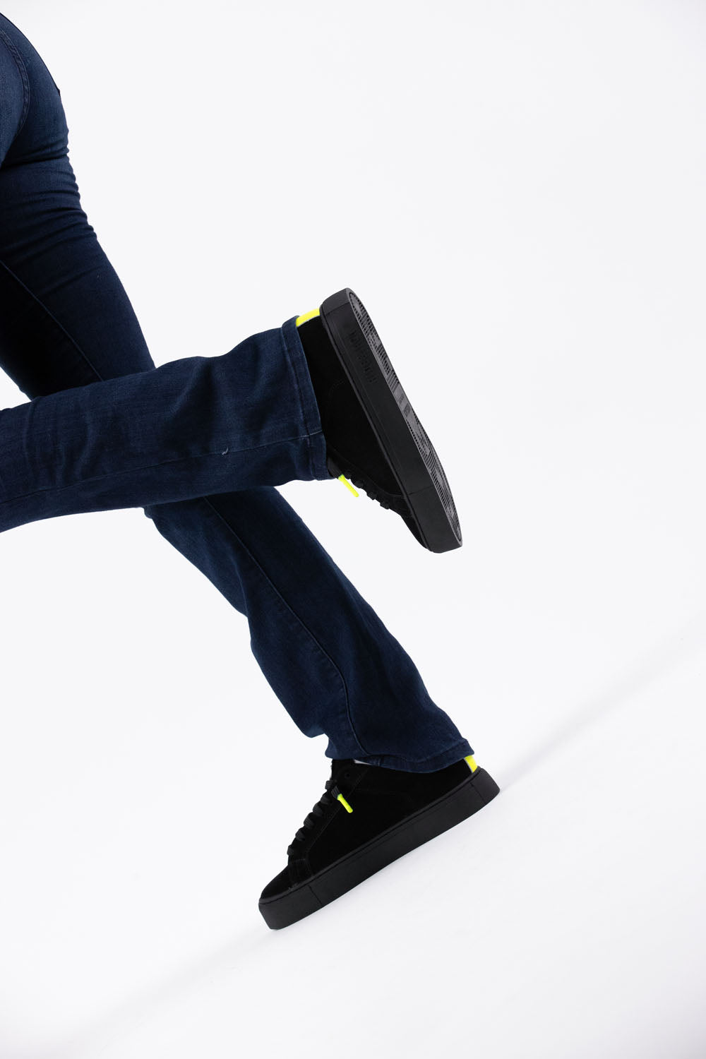 OIL is inspired by the late 70’s, a minimal sneaker with bright neon-color details. Upper in suede, with coated rubberized laces to match color details. The sole is in rubber for a maximum comfort and durability. Fussbett and lining are in full leather.