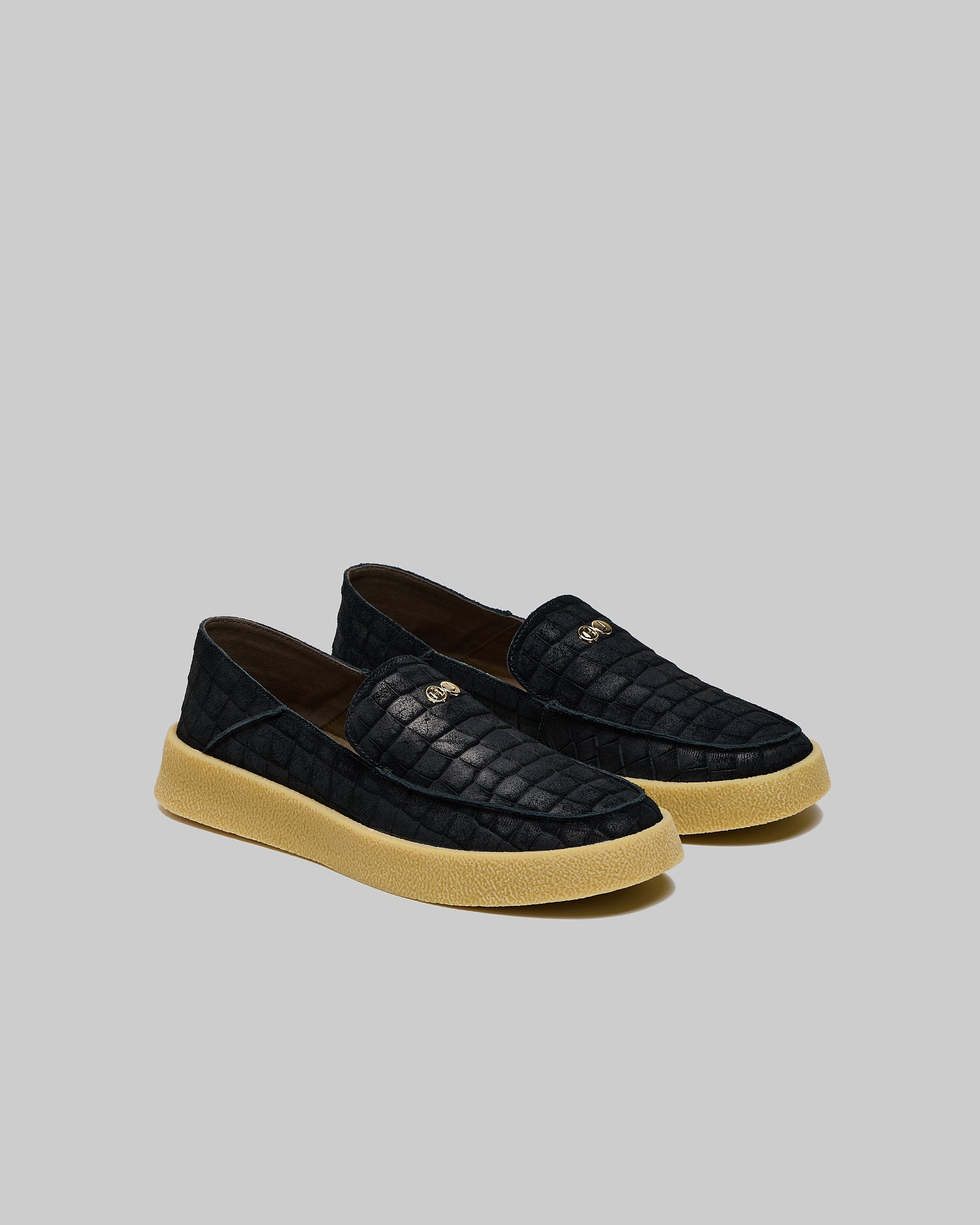 A summer slip-on in unlined croc suede, soft and lightweight.