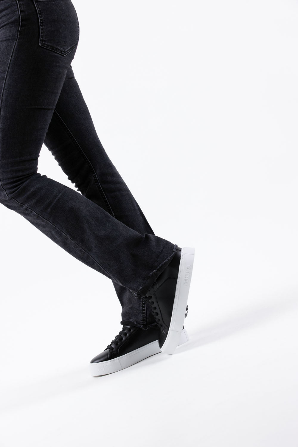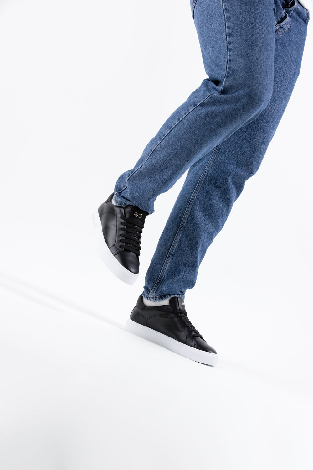 Elevate you everyday style with Italian-designed Sky All Black White sneakers. Timeless elegance in sleek black leather.
