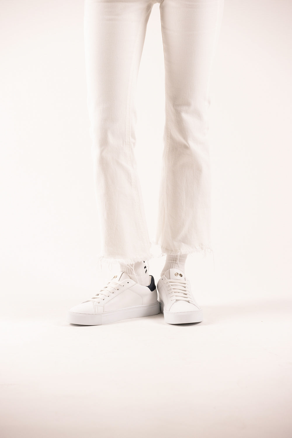 The Sky model is a low-rise luxury designer sneaker that's perfect for any occasion. These low-rise sneakers are 100% made from the finest calf leather, ensuring superior quality and comfort. The classic white upper is accented by a stylish croco-printed insert, creating a unique and eye-catching look.